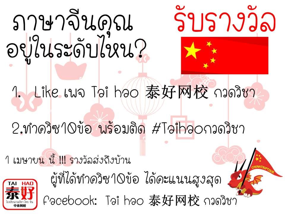 มาดูกันว่า ภาษาจีนของคุณอยู่ใน level ไหน? ศัพท์วัยรุ่น only!!! cr.เพจ" Taihao 泰好网校 กวดวิชา"