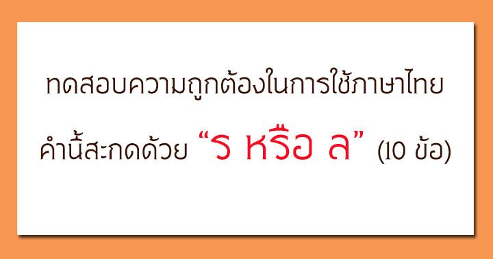 ทดสอบความถูกต้องในการใช้ภาษาไทย คำนี้สะกดด้วย ร หรือ ล (10 ข้อ)