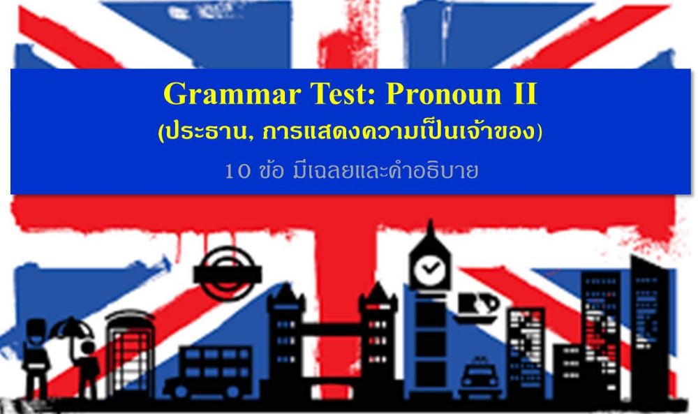 Pronoun คือคำทีใช้แทนคำนาม เ่ช่น I You We They He She It ซึ่งมีทั้งแบบประธาน กรรม และการแสดงความเป็นเจ้าของ ลองทดสอบกัน ง่ายมาก ^^ปล.ทำเสร็จแล้วอย่าลืมดูเฉลยและคำอธิบายนะ