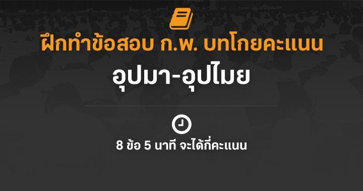 ชวนมาฝึกความเร็ว ในการทำข้อสอบ ก.พ. บทโกยคะแนน อุปมา-อุปไมย 8 ข้อ 5 นาที จะได้กี่คะแนน ?