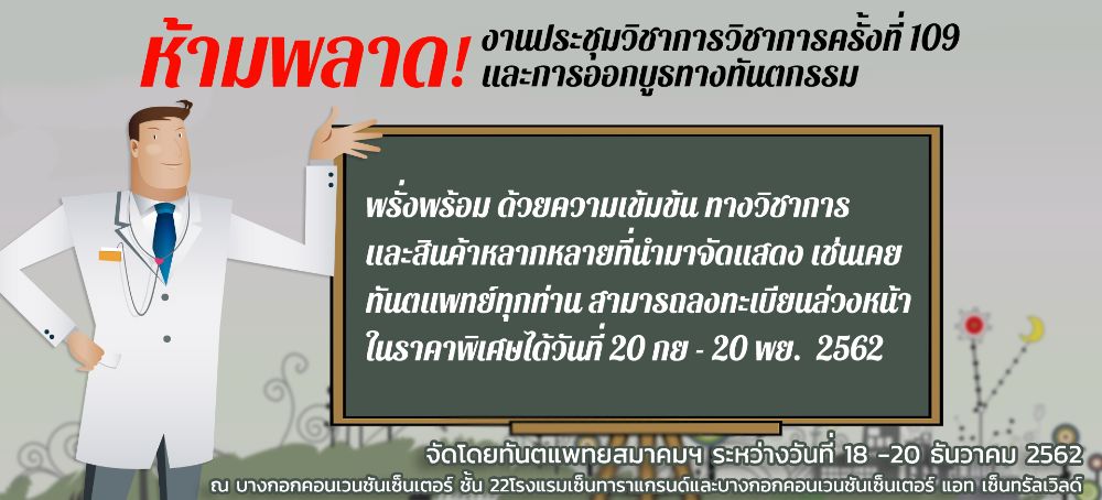 งานประชุมวิชาการวิชาการครั้งที่ 109 และการออกบูธทางทันตกรรม จัดโดยทันตแพทยสมาคมฯ ระหว่าง 18-20 ธันวาคม 2562