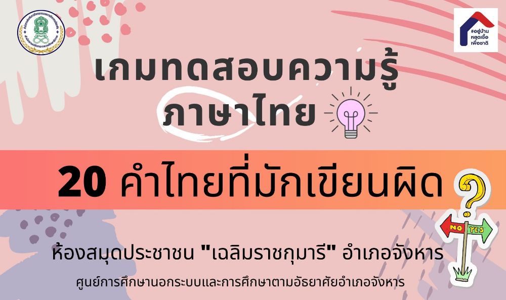 ภาษาไทยของเราเป็นภาษาที่เรียนรู้ได้ยากอันดับต้นๆ ของโลก ด้วยสระ พยัญชนะ วรรณยุกต์ ที่เยอะมาก จึงไม่แปลกใจเลยที่เวลาเขียนจะมีคนที่ยังเขียนผิดอยู่บ้าง ห้องสมุดประชาชน "เฉลิมราชกุมารี" อำเภอจังหาร จึงได้รวบรวม คำที่มักเขียนผิดในภาษาไทย ให้ทุกคนได้ทดสอบทักษะความรู้ทางด้านภาษาไทยกัน ใช้ถูกหรือใช้ผิด มีคำอะไรบ้าง มาลองทำแบบทดสอบกันเลยค่ะ