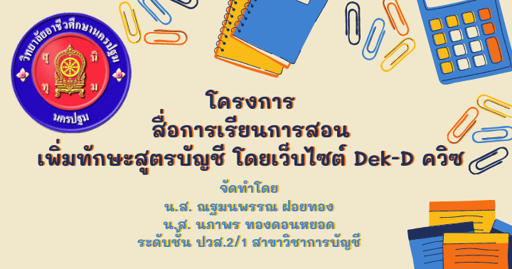 สื่อการเรียนการสอน เพิ่มทักษะสูตรบัญชี โดยเว็บไซต์ Dek-D ควิซ