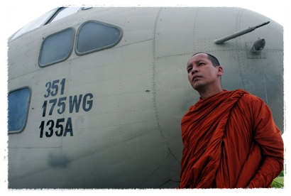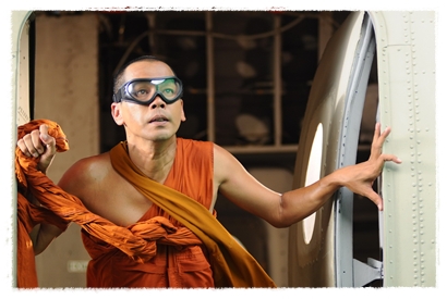 สำหรับโปรเจ็คต์ จีวรบิน ก็เป็นอะไรที่อยากจะทำมานานแล้วครับ แล้วก็เป็นหนังพระด้วย แน่นอนครับว่าทำแล้ว มันต้องมีอะไรพิเศษ ไอเดียของเรื่องราวพูดถึงพระรูปหนึ่งไปอยู่เมืองนอกและจะเดินทางกลับเมืองไทย ซึ่งยังไงพระทุกรูปก็ต้องนั่งเครื่องบินกันอยู่แล้ว แต่กลายเป็นว่าถ้ามีเหตุให้เกิดเครื่องบินตกละ ไอ้ความคิดนี้มันก็ปี๊ดขึ้นมาในมันสมองมันก็เริ่มประมวลเป็นภาพแล้วก็จดๆ ก็เลยนึกขึ้นได้ว่าตั้งแต่เราเป็นเด็กมาไม่เคยเห็นพระประเทศไหนขับเครื่องบิน เออ!! ใช่ว่าพระอยากจะมาขับ ก็ไม่ใช่นะ!!เพราะพระไม่ได้มีความอยากที่จะขับอยู่แล้ว แต่มันต้องมีเหตุการณ์จำเป็นจริงๆ และต้องเป็นอะไรที่คล้องจองกับคำว่า ตนเป็นที่พึ่งแห่งตน คือถ้าพระรูปนี้ไม่ขับเครื่องบิน ผู้โดยสารทั้งหมดทั้งลำก็ต้องตายกันหมด นี่แหละที่มาที่ไปก็เริ่มจากที่เรามีไอเดียที่ว่า เออทำไมพระต้องขับเครื่องบินด้วย เราก็พยายามแต่งเติมตัวละครรอบข้างเพื่อมีเหตุและมีผลสมควรที่พระจะมาขับเครื่องบิน |