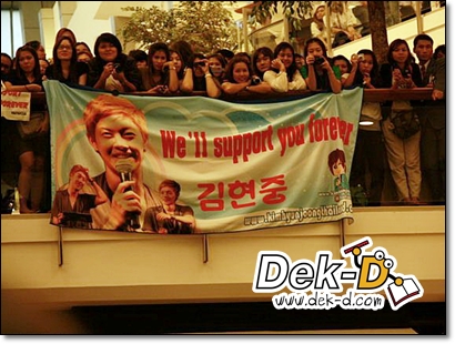 สมการรอคอยของแฟนคลับชาวไทย เมื่อนักร้อง/นักแสดงหนุ่มสุดหล่อ "คิม ฮยอน จุง" เดินทางถึงไทยในมาดศิลปินเดี่ยวครั้งแรกเพื่อมาโปรโมทอัลบั้ม BREAK DOWN อัลบั้มเดี่ยวอัลบั้มแรกในชีวิตของเขา โดยทันทีที่เดินทางถึงสนามบินสุวรรณภูมิ ก็ต้องตกใจกับแฟนคลับชาวไทยที่ไปต้อนรับกันแบบล้นหลาม ซึ่งการมาในครั้งนนี้ฮยอนจุงบอกว่า ถึงแม้เดินทางมาคนเดียวก็ไม่มีเหงาอย่างแน่นอน เพราะแฟนเพลงชาวไทยแห่ไปต้อนรับอบอุ่นขนาดนี้ หลังจากนั้นเวลาบ่ายโมงที่โรงแรมดุสิตธานี ได้มีจัดงานแถลงข่าวเปิดตัวอัลบั้ม BREAK DOWN ของคิมฮยอนจุง ที่ห้องศาลาแดง เวลา 16.30น. โดยมีน้ำหวาน พิมรา เจริญภักดี รับหน้าที่เป็นพิธีกรในวันนี้ ... โอกาสดีๆ แบบนี้พี่เหมี่ยวก็ไม่พลาดที่จะตามไปเก็บบทสัมภาษณ์และภาพบรรยากาศในงานมาฝาก น้องๆ Dek-D แน่นอนค่ะ ... สำหรับบรรยากาศในงานแถลงข่าวนั้น คิมฮยอนจุงได้ให้สัมภาษณ์แบบเป็นกันเองกับนักข่าวมากมายที่สนใจและร่วมเดินทางมาทำข่าวงานแถลงข่าวในวันนั้น แนะนำตัวกับกับแฟนๆ ชาวไทยและสื่อมวลชนที่มาต้อนรับ ฮยอนจุง : สวัสดีครับ I'm Kim Hyun Joong (ยิ้ม) ฮยอนจุงจำได้รึเปล่าวว่ามาเมืองไทยครั้งสุดท้ายเมื่อไหร่ และคิดถึงอะไรที่เมืองไทยมากที่สุด ฮยอนจุง : ครั้งล่าสุดที่ผมได้มาเมืองไทยก็คือ ตอนคอนเสิร์ต SS501 วันนี้ก็กลับมาอีกครั้งหนึ่งหลังจากที่ไม่ได้มานานพอสมควร แต่ว่าวันนี้ก็มีแฟนๆ มารอรับที่สนามบินเยอะมาก ผมรู้สึกอบอุ่นมากๆ และรู้สึกว่าไม่เหงาถึงแม้จะมาคนเดียว แต่ก็ยังมีแฟนคลับที่คอยรอผมอยู่ พูดถึงอัลบั้มเดี่ยวกันบ้างดีกว่า อยากให้ฮยอนจุง นิยามคำว่า Break Down ฮยอนจุง : ตอนนี้อัลบั้มชุดแรกของผมก็วางจำหน่ายแล้วครับ มีชื่อว่า Break Down สำหรับคอนเซ็ปต์ของอัลบั้มชุดนี้เนื่องจากเมื่อก่อนผมเป็นไอดอลใช่ไหมครับ แต่ในตอนนี้ผมอยากให้ทุกคนเห็นอีกมุมหนึ่งของตัวเองว่าผมสามารถทำเพลงแนวนี้ได้เหมือนกัน คิดว่าแฟนๆ คงจะได้ฟังเพลงกันแล้ว ผมได้มีส่วนร่วมในการทำอัลบั้มด้วยครับ อยากให้ทุกคนช่วยติดตามผลงาน ของผมด้วยครับ ฮยอนจุงมีส่วนร่วมอะไรในการทำอัลบั้มชุดนี้บ้าง ฮยอนจุง : ผมทำหน้าที่เป็นโปรดิวเซอร์ในอัลบั้มนี้เอง รวมถึงโลโก้และหน้าปกอัลบั้มผมก็ออกแบบเองเช่นกันครับ ตอนเลือกเพลงผมก็เป็นคนเลือกเพลงเองทั้งหมดเลย สำหรับอัลบั้มชุดนี้ผมก็ลงทุนทำทุกสิ่งทุกอย่างเป็นอย่างมาก รู้สึกดีใจที่แฟนๆ ให้การตอบรับดีมาก ขอบคุณแฟนๆทุกคนมากเลยครับ แล้วฮยอนจุงภูมิใจกับส่วนไหนของผลงานอัลบั้มชุดนี้มากที่สุด ฮยอนจุง : ผมภูมิใจที่ตัวเองได้รับการยอมรับในฐานะของศิลป
