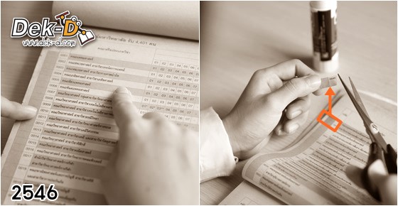 เชื่อว่าน้องๆ คงจะงง ตัดแปะอะไร ไม่เข้าใจ เล่าง่ายๆ ให้เห็นภาพ สมัยก่อนเวลาจะยื่นเลือกคณะ จะต้องซื้อหนังสือระเบียบการ ในนั้นจะมีข้อมูลที่เป็นตารางของแต่ละคณะ แต่ละมหาวิทยาลัย ใครจะเข้าคณะไหน ตัดรหัสนั้นมาแปะในใบสมัครเลยค่ะ ตัดแล้วใช้กาวแท่งค่อยๆ บรรจงติดอันดับ 1 2 3 4 ลงไป งานนี้บอกเลยว่าต้องใช้ทักษะศิลปะตัดแปะชั้นสูง ไหนจะช่องเล็กจิ๋ว ไหนจะกลัวมันปลิวระหว่างตัด ไหนจะตัดผิดช่อง แปะผิดด้าน โอ๊ย เชื่อเถอะว่าเด็กเอ็นท์สมัยนั้นเจอมาหมด