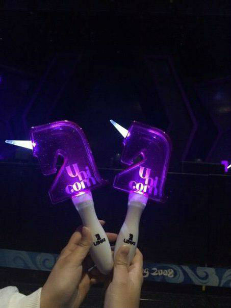 ใครว่าแท่งไฟไอเดียเจ๋งๆ จะมีแต่วงผู้ชายซะที่ไหนกัน อย่างสาวๆ 4MINUTE นี่เขาก็มีของดีนะ แท่งไฟรูปอภิมหาเพชรสีม่วง (เรียกเพชรเฉยๆ ยังไม่ใหญ่พอ) ของสวยๆ งามๆ ก็ต้องคู่กับเกิร์ลกรุ๊ปจริงไหมล่ะ และสีของแท่งไฟก็ไม่ใช่การเดาสุ่มจากที่ไหน คือสีประจำวง 4MINUTE นั่นเองค่ะ ดูจากในรูปเปิดแท่งเดียวยังสว่างไกลไปหลายกิโล ถ้าไปโบกในคอนเสิร์ตจะสวยขนาดไหนเนี่ย พูดแล้วขนลุก