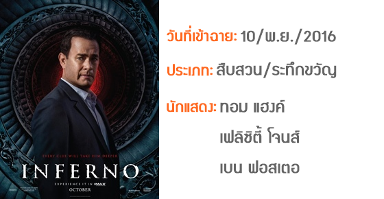 การผจญภัยครั้งใหม่ของ ศาสตราจารย์โรเบิร์ต แลงดอน หลังจากที่ไปกู้โลกในเรื่อง The Da Vinci Code รหัสลับบันทึกโลก และ Angels & Demons เทวากับซาตาน มาคราวนี้ก็ยังเข้มข้นเร้าใจเหมือนเดิม เพราะโรเบิร์ต แลงดอน ตื่นขึ้นมาพร้อมกับความทรงจำบางอย่างที่สูญเสียไป และพบว่าเค้ากำลังถูกตามฆ่า แล้วก็ไปพบกับปริศนาที่จะนำพามวลมนุษย์ชาติรอดพ้นจากโรคระบาดร้ายแรง แล้วโรเบิร์ต แลงดอนจะช่วยโลกได้หรือไม่? อย่างไร? ต้องไปดู