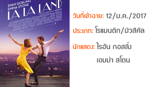 หนังที่จะทำให้น้องๆ รู้สึกเหมือนดูละครเวทีในโรงภาพยนตร์ เรื่องราวความรักบทเส้นขนานระหว่าง เซบาสเตียน นักเปียโนสไตล์แจ๊ซ กับนักแสดงสาวดาวรุ่งมีอา ที่ต่างตนต่างมุ่งหน้าไปหาความฝันแต่เรื่องความรักกับสวนทางกันอย่างสิ้นเชิง บอกก่อนเลยว่าเสียงวิจารณ์เรื่องนี้มาดีมาก แถมกวาดรางวัลมาแล้วทั่วโลก แต่จะเป็นเพราะอะไรนั้นไปหาคำตอบพร้อมๆ กันค่ะ