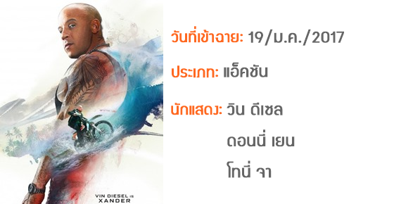 เมื่อทางการต้องการหยุดยั้งแผนการร้าย ของอาชญากรขาโหดที่ต้องการยึดครองสุดยอดอาวุธอย่าง “Pandora’s Box” งานนี้จึงต้องอาศัยความสามารถแบบบ้าดีเดือด ของทริปเปิ้ลเอ็กซ์และเดอะแก๊ง เรื่องนี้รับประกันความมันโดยวิน ดีเซล พร้อมด้วยสายบู๊ทั่วโลก ทั้ง ดอนนี่ เยน จา พนม อดีตไอดอลเกาหลี คริส วู ก็มี นักบอลซุป'ตาร์ เนย์มาร์ก็มี จัดหนัดจัดเต็มขนาดนี้ พลาดไม่ได้แล้ว