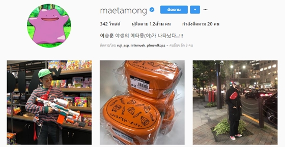 เดี๋ยวๆๆ นี่ไม่ใช่แอคเคาท์ของโปเกม่อน ไม่ใช่เกมหรืออะไร แต่ในรายการ ASK IN A BOX "ซึงฮุน" WINNER เขาให้คำตอบไว้ว่า เขาชอบคาแร็คเตอร์ของเจ้าเมตาม่อนมาก แล้วก็เคยเซฟรูปเก็บเอาไว้ในมือถือ พอถึงตอนที่สมัครเล่นไอจีเป็นครั้งแรกรูปเจ้าเมตาม่อนก็อยู่ในอัลบั้มเป็นรูปแรกพอดี ก็เลยหยิบมาใช้ซะเลย ในเมื่อเอารูปมาแล้วไม่เอาชื่อมาด้วยก็กลัวจะน้อยใจ แล้วบังเอิญว่ายังไม่มีใครใช้ชื่อนี้เป็นไอดีพอดี @maetamong ก็เลยกลายเป็นชื่อไอจีของซึงฮุนในที่สุด