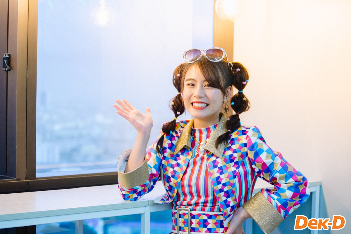 ไอดอลของหนูคือตัวหนูเอง หนูรู้สึกว่าไม่เคยมีใครเป็นไอดอลหนู เหมือนหนูแค่มองกระจกมองตัวเองแล้วเอาตัวเองนี่แหละเป็นไอดอล พอหนูมองกระจกแล้วหนูจะรู้ว่าหนูต้องทำอะไรบ้าง อย่างเรื่องเต้น หนูไม่เคยเรียนเต้นเลยค่ะ ถ้าเรียนเต้นจริงๆ จังๆ ก็ตอนที่เข้ามาเป็น BNK48 นี่แหละ ทั้งชีวิตก็คือเรียนกับตัวเองเรียนกับกระจก ชีวิตหนูอยู่แต่กับกระจก ขาดกระจกไม่ได้จริงๆ ถ้าไม่มีกระจกหนูจะไม่มีความสุข