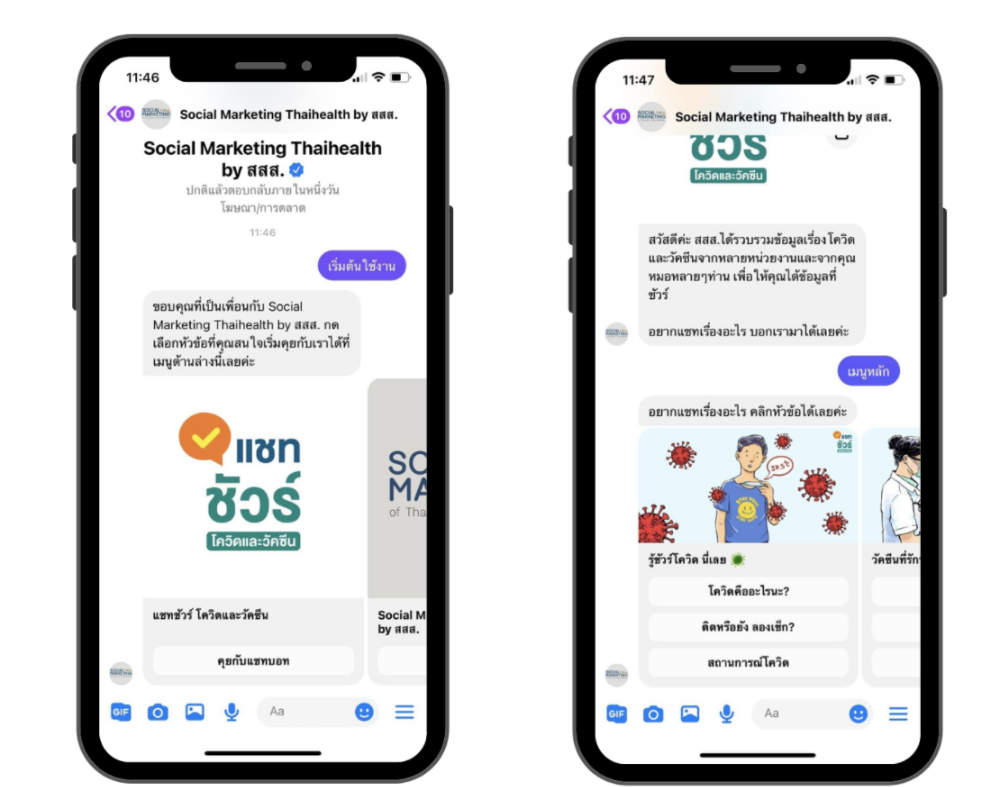 นายไมเคิล บัค หัวหน้าฝ่ายนโยบายสาธารณะ Facebook ประเทศไทย กล่าวว่า “Facebook ได้เชื่อมต่อผู้คนกว่า 2 พันล้านคนใน 189 ประเทศ ให้เข้าถึงข้อมูลจากหน่วยงานทางการของรัฐ ผ่านศูนย์ข้อมูลโควิด-19 บน Facebook สำหรับประเทศไทยมีการเชื่อมต่อกับเพจของกรมควบคุมโรค กระทรวงสาธารณสุข เพจไทยรู้สู้โควิด สสส. หรือองค์การอนามัยโลก เป็นต้น ปัจจุบันมีจำนวนผู้ใช้งาน Messenger ทั่วโลกกว่า 1.3 พันล้านคนต่อเดือน สำหรับในประเทศไทย มีผู้ใช้งาน Facebook เป็นประจำทุกเดือนมากกว่า 60 ล้านคนโดย Messenger แชทบอท “แชทชัวร์” ที่เราร่วมกันเปิดตัวนี้ซึ่งทำงานด้วยระบบ AI จะสามารถช่วยให้เพจ Social Marketing ThaiHealth by สสส. ตอบคำถามที่ถูกถามเข้ามาบ่อยให้กับผู้คนจำนวนมากได้อย่างรวดเร็วและช่วยแบ่งเบาภาระของเจ้าหน้าที่ในการตอบคำถาม การขยายความร่วมมือกับกระทรวงสาธารณสุข ผ่านการทำงานของสสส. และพันธมิตรด้านเทคโนโลยี HBot ช่วยให้คนไทยเข้าถึงข้อมูลด้านสุขภาพที่มีความถูกต้องได้อย่างรวดเร็ว นับเป็นความพยายามต่อเนื่องในการช่วยเสริมพันธกิจเดินหน้าเป็นแหล่งข้อมูลที่เชื่อถือได้ให้กับผู้ใช้งานชาวไทยและเป็นส่วนหนึ่งในการร่วมฟื้นฟูวิกฤตสุขภาพทั้งในเชิงสังคมและเศรษฐกิจในประเทศไทย”