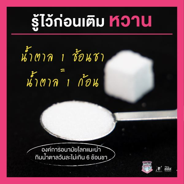 ซึ่งปริมาณน้ำตาลก้อน 1 ก้อน ก็จะเท่ากับ น้ำตาล 1 ช้อนชา ใน 1 วันไม่ควรกินน้ำตาลเกิน 6 ช้อนชา