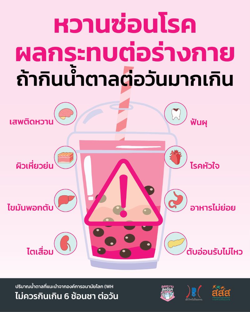 เคยลองสังเกตตัวเองกันไหมว่า แต่ละวันคุณกินน้ำตาลกี่ช้อนชา และถ้าลองเอาคำถามนี้ไปถามคนใกล้ตัว ส่วนใหญ่จะส่ายหน้าและตอบกลับมาคล้ายๆ กันว่า “ไม่รู้” ส่วนบางคนตอบอย่างมั่นใจว่า ไม่เกิน 6 ช้อนชาแน่นอน เพราะเวลาสั่งอาหารและเครื่องดื่มทุกครั้งจะเลือกสั่งหวานน้อย แต่ผลสำรวจจากสำนักงานคณะกรรมอ้อยและน้ำตาล พบว่า ทุกวันนี้คนไทยกินน้ำตาลมากถึง 25 ช้อนชาต่อวัน ซึ่งเกินกว่าที่องค์การอนามัย (WHO) กำหนดไว้ไม่ควรเกิน 6 ช้อนชาต่อวัน หรือมากกว่าเกณฑ์ถึง 4 เท่าทีเดียว