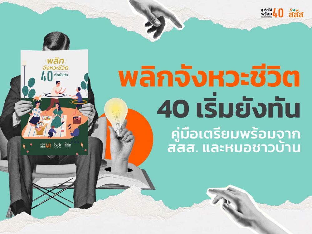 ด้วยเหตุนี้ สำนักงานกองทุนสนับสนุนการสร้างเสริมสุขภาพ (สสส.) ร่วมกับ มูลนิธิหมอชาวบ้าน จึงได้จัดทำ “คู่มือพลิกจังหวะชีวิต 40 เริ่มยังทัน” เพื่อเป็น เพื่อนคู่คิด และ แผนที่ชีวิต ที่ช่วยให้คุณเริ่มเตรียมตัวตั้งแต่วันนี้
