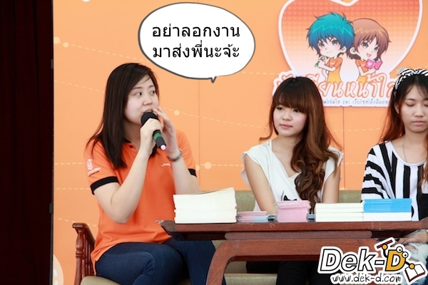 เมื่อวันที่ 2 กรกฎาคม 2556 นี้เองที่พี่ๆ จากสำนักพิมพ์แจ่มใสและทีมงานจากเว็บไซต์ Dek-D.com ของเราได้ไปจัดกิจกรรมที่โรงเรียนหญิงล้วนอีกโรงเรียนหนึ่งมา พี่น้องก็เลยเอาภาพบรรยากาศมาให้ทุกคนได้อิจฉากันเล่นค่ะ