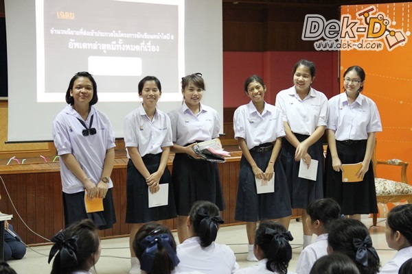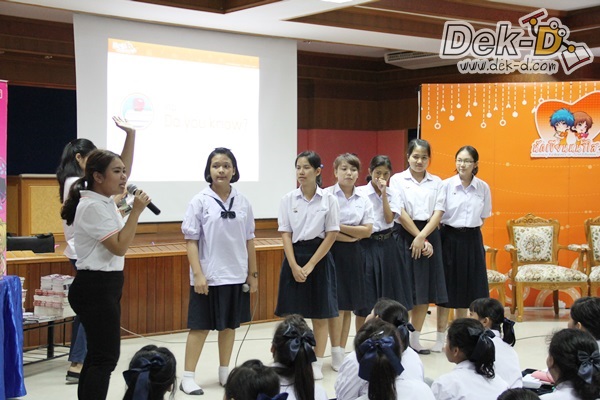 หลังจากที่ได้รับความรู้กันไปแล้ว พี่เป้ ก็ออกมาจัดกิจกรรมสันทนาการกัน เริ่มจากการเล่นเกมตอบคำถามชิงของรางวัลเป็นสมุดและเข็มกลัดจากเว็บไซต์ Dek-D.com และสุดท้ายก็คือเกมชิงรางวัลใหญ่ของระดับชั้น มาดูภาพบรรยากาศในห้องโสตฯ ของโรงเรียนกันค่ะ ว่าสนุกขนาดไหน