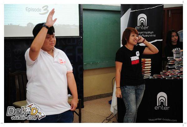 ก่อนอื่นพี่ๆ ก็มีคลิปเปิดตัวมาให้ชมกัน จะได้รู้จักโครงการ Enter Books Writer Episode 3 กันมากยิ่งขึ้น และใช้พลังจิตวิทยาขั้นเทพเชิญชวนน้องๆ มาสมัครเข้าประกวดกันเยอะๆ และหลังจากเล่นเกมกับพี่ดาวปลุกน้องๆ ให้ตื่นจากการกินข้าวกลางวันแล้ว เราก็เข้าสู่ช่วงรับความรู้จากวิทยากรพิเศษของเรากัน