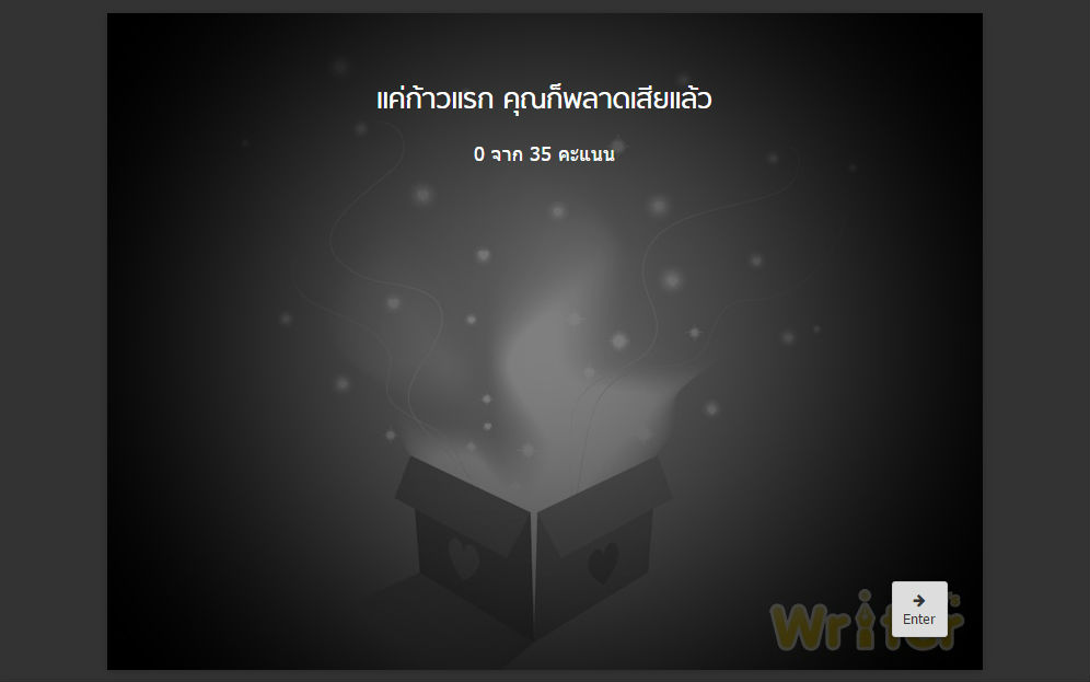 *พี่จะตรวจสอบว่าแต่ละคนได้คะแนนจริงหรือเปล่า หากพบว่าคะแนนที่ได้นั้นเมคขึ้นเอง จะถูกตัดสิทธิ์ทั้งกิจกรรมนี้และกิจกรรมต่อๆ ไปทันที*
