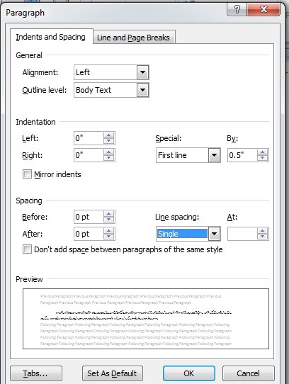 เหตุผลก็เพราะ ทุกครั้งที่เราขึ้นบรรทัดใหม่โดยการเอ็นเตอร์ ก็จะมีการย่อหน้าให้หนึ่งแท็บโดยที่เราไม่จำเป็นต้องกด หรือรัวสเปซบาร์ให้เมื่อยและเสี่ยงต่อการไม่เท่ากันเลย และอย่าลืมตั้งกั้นหน้ากั้นหลังย่อหน้าเป็นแบบ ดังรูป