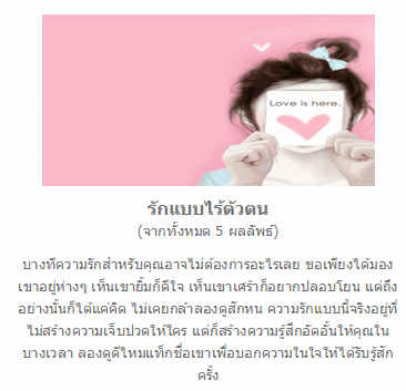 ไปอ่านกันค่ะ เพียงแค่ไปเล่นเกม “รักแบบไหนที่ซ่อนอยู่ในตัวคุณ”