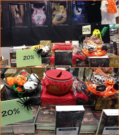จากหวานๆ ใสๆ ขอกระชากอารมณ์เปลี่ยนบรรยากาศมาหานิยายสยองขวัญอ่านกันที่ บูธสำนักพิมพ์ Sofa บูธนี้นอกจากจะมีนักเขียนมาแจกลายเซ็นใกล้ชิดกันแทบทุกวันแล้ว ยังมีกิจกรรมสนุกๆ ให้ได้เล่นอีกด้วยนะ นี่ๆ แอบเห็นเขามีพร็อพให้ถ่ายรูปกับนักเขียนด้วยนะ แถมยังมีหม้อหมอผีมาให้จับรางวัลกันสนุกสนาน ไม่แปลกใจเดินไปบูธนี้ทีไรคนก็ยืนเลือกนิยายแน่นกันตลอด มีอยู่วันหนึ่งพี่ๆ ที่ยืนแนะนำประจำบูธบอกพี่อรว่า มาค่ะมาช้อปนิยายผีรับฮาโลวีนกัน พี่อรนี่ยิ้มเลยเป็นบูธขายนิยายผีที่อัธยาศัยดีสุดๆ รักกกกก