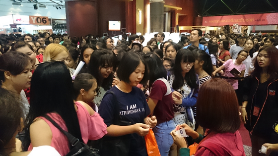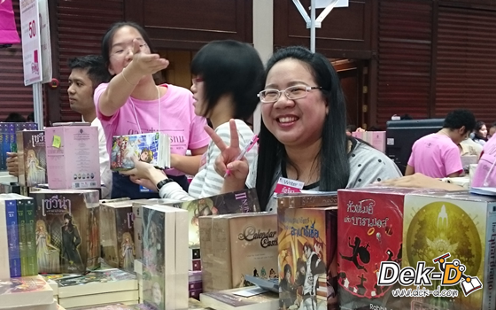 นี่บรรยากาศหน้าบูธแจ่มใส ตอนแจกบัตรคิวขอลายเซ็นนักเขียน งานซุป'ตาร์ชัดๆ