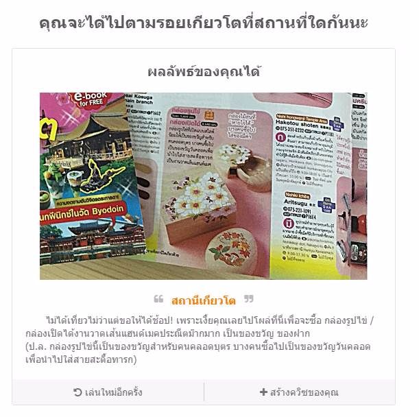 "คุณจะได้ไปตามรอยเกียวโตที่สถานที่ใดกันนะ"