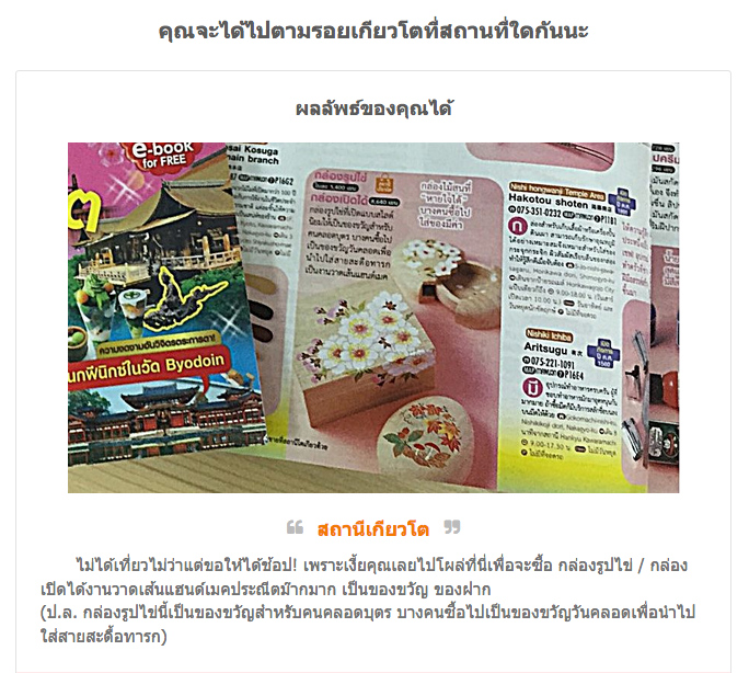 ผู้โชคดีได้รับรางวัลหนังสือ Omotenashi Travel Guide เกียวโต ได้แก่
