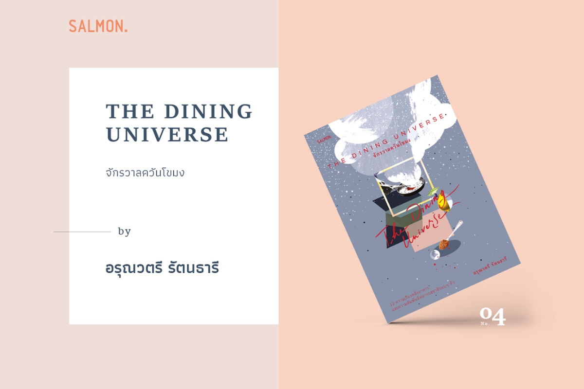และนั่นเป็นที่มาของหนังสือที่พี่นำมาฝากน้องๆ ในวันนี้ค่ะ หนังสือชื่อหอมกลิ่นอาหารที่ข้างในว่าด้วยความเรียงกึ่งวรรณกรรม12 เรื่องราวอย่าง “THE DINING UNIVERSE จักรวาลควันขโมง” จากปลายปากกาของอรุณวตรี รัตนธารี ของสำนักพิมพ์แซลมอน หนังสือเล่มไม่ใหญ่ ขนาดกำลังพอเหมาะ พกพาสะดวกไปอ่านทุกที่ทุกเวลา