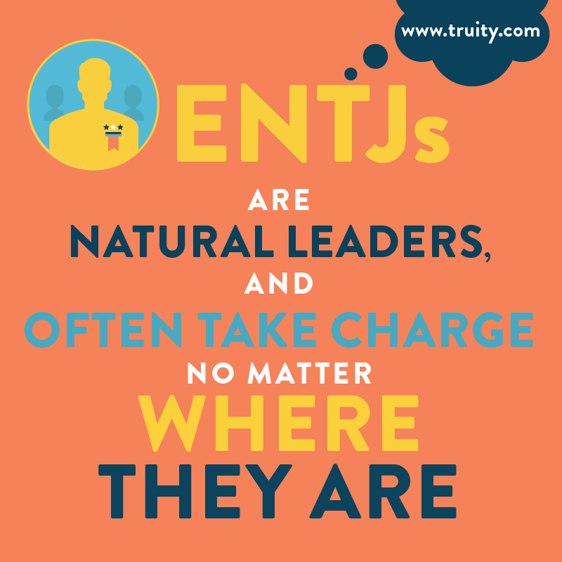 พูดเลยว่าชาว ENTJ บอร์นทูบีผู้นำโดยแท้ทรู เวลามีงานกลุ่ม ต่อให้ชาว ENTJ ไม่ได้เสนอตัวเป็นหัวหน้า แต่พวกเขาก็มักจะได้ตำแหน่งนี้ไปแบบงงๆ เพราะพวกเขามีความเป็นผู้นำที่ดีมาก มีทักษะการสื่อสารที่ยอดเยี่ยม ไม่ว่าจะเป็นด้านการฟัง พูด อ่าน เขียน โดยเฉพาะทักษะการพูด บอกเลยว่ามีวาทศิลป์เป็นเยี่ยม สามารถโน้มน้าวจิตใจคนได้ง่ายๆ นอกจากนี้พวกเขายังเป็นคนกล้าตัดสินใจอย่างรวดเร็วและเด็ดขาด รู้จักวางแผนงานและมอบหมายหน้าที่ได้อย่างเท่าเทียม