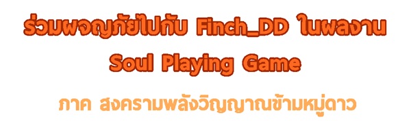Finch_DD : soul playing game เป็นเรื่องแรกที่เขียนอย่างจริงจังในช่วงที่เกมคอมกำลังบูมมาก แต่เราไม่ได้เล่นเพราะมันมีค่าพลังอะไรต่างๆเยอะแยะจนจำไม่ไหว เลยมาเขียนเป็นนิยายแบบไม่ต้องใช้ค่าพลังอะไรทั้งนั้นเสียเลย