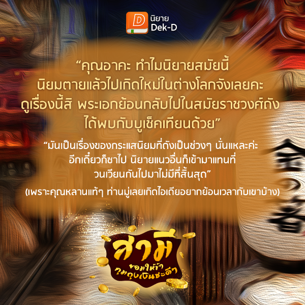 หลังจากอ่านนิยายเรื่องนี้จบลง พี่หญิงประทับใจคำพูดหนึ่งของมู่หยางเฟิ่งที่พูดกับฮ่องเต้ในตอนท้ายๆ เรื่องไม่น้อยเลยค่ะ “ฝ่าบาทไม่มีทางได้รับในสิ่งที่แม้แต่ฝ่าบาทก็ไม่เชื่อว่ามันเป็นไปได้” เพราะไม่เชื่อเลยมีสายตาคับแคบจนทำให้ฮ่องเต้ได้ทำสิ่งที่ผิดพลาดลงไปในท้ายที่สุด ก็เหมือนกับการเขียนนิยายของเรานั่นล่ะ ถ้าเราไม่เชื่อก่อนว่า “ทำได้” แล้วลงมือทำ เราก็ไม่มีทางที่จะเขียนนิยายสำเร็จขึ้นมาได้เลย นอกจากนี้ประเด็นเรื่อง “เงิน” ในเรื่องนี้ก็น่าสนใจค่ะ มีการสอดแทรกข้อคิดให้คนอ่านอย่างเราได้รู้ว่า… ชีวิตของคนเรานั้น มีอะไรอื่นๆ แวดล้อมอีกมากมาย ไม่ใช่แค่เงินเท่านั้น เราจึงไม่ควรใช้เงินเป็นตัวตัดสินทุกสิ่งทุกอย่าง และควรจะใช้ความรู้สึกให้มากขึ้นค่ะ