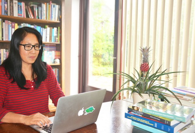 ทำงานหนังสือมาได้ระยะหนึ่ง เราก็ไปเรียนต่อที่ประเทศเยอรมนี คณะวรรณกรรม ยังเรียนไม่จบก็เลิกไปก่อน ไม่ใช่ไม่ชอบ แต่พอดีมีหนุ่มหลวมตัวมาขอแต่งงาน เลยย้ายประเทศมาอยู่เนเธอร์แลนด์ คิดว่าเดี๋ยวแต่งงานแล้วค่อยกลับไปเรียนใหม่ เอาเข้าจริงไม่ได้ทำ เพราะมีลูกเลยในปีถัดมา ทีนี้เลยยาว เปลี่ยนวิถีชีวิตจากสาวทำงานมาเป็นแม่บ้าน แล้วก็สนุกกับกิจกรรมอื่นจนเลิกเขียนหนังสือไปเลย ตอนไปเรียนต่อยังเขียนเรื่องสั้นส่งมาเมืองไทยอยู่บ้าง หลังแต่งงานเขียนเรื่องยาวขนาดสั้นอีกเพียงเรื่องเดียว เท่าที่จำได้นะคะ ลงนิตยสารดิฉัน แล้วก็ไม่ได้เขียนอีกเลย ไม่โหยหาด้วย เพราะตอนทำนิตยสารต้องเขียนคอลัมน์เยอะมาก ทำให้กลายเป็นคนพิมพ์เร็ว เขียนเร็ว คิดเร็ว แล้วมันเหมือนอิ่มตัว ไม่รู้สึกท้าทายกับงานเขียน