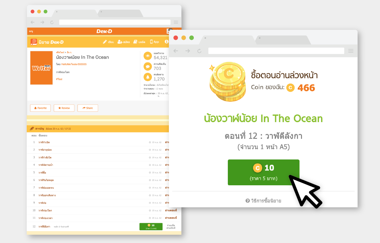 โดยสกุลเงินที่ใช้ซื้อนิยายบนเว็บไซต์ Dek-D จะอยู่ในรูปของหน่วย Coin เหมือนเดิม