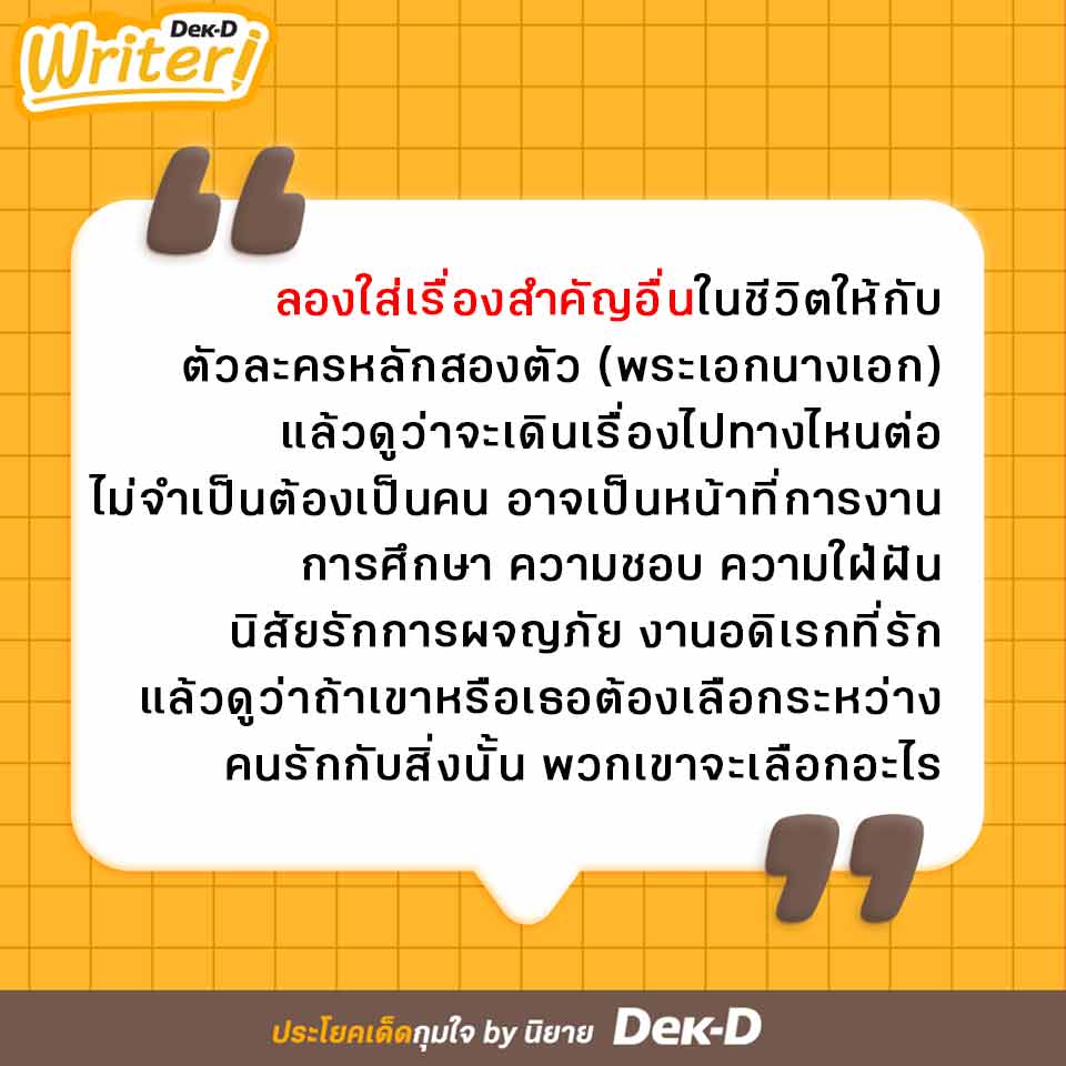 เคล็ดลับ 1 ให้ตัวละครได้หยุดและคิดเรื่องความสัมพันธ์