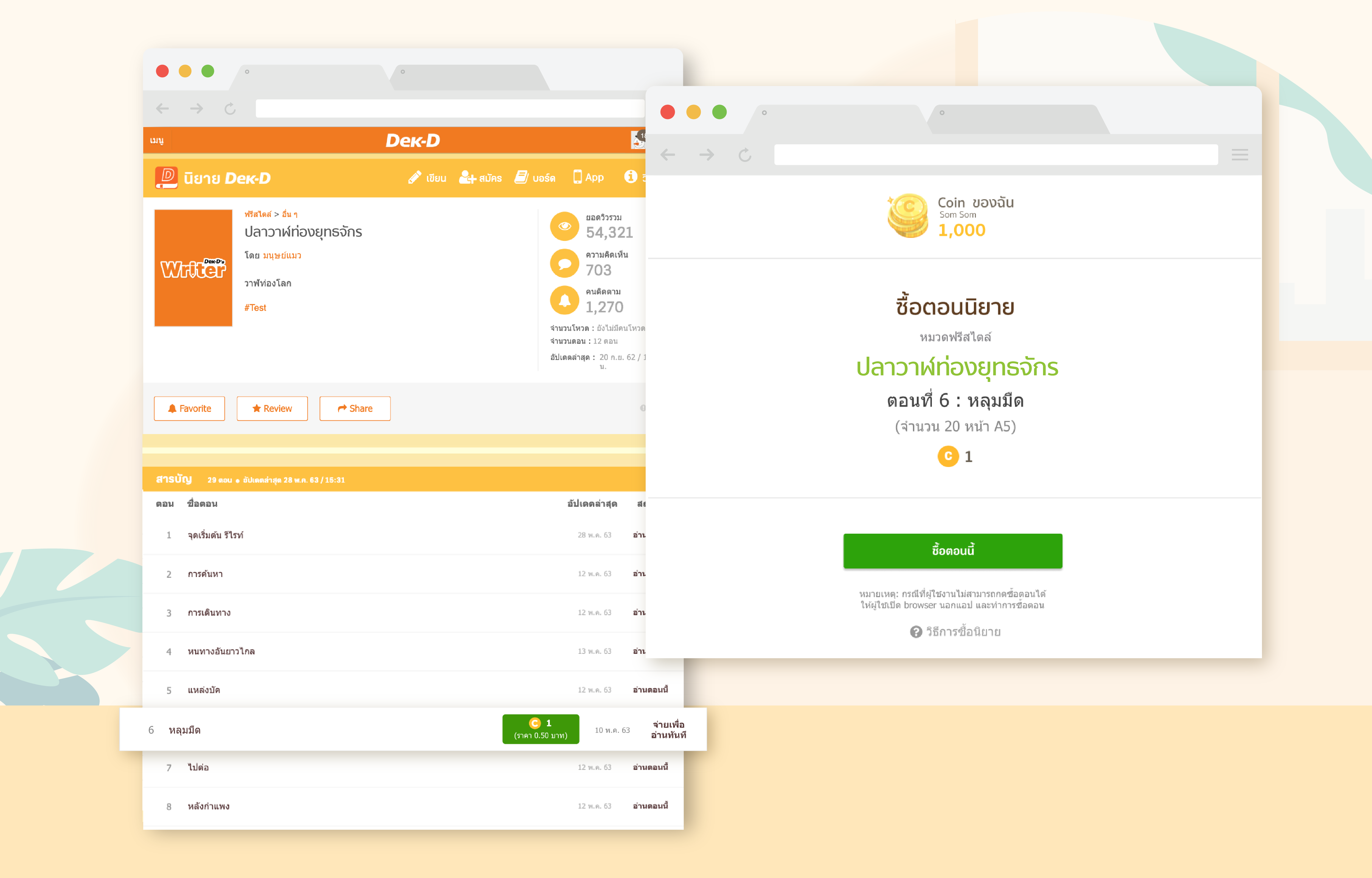 โดยสกุลเงินที่ใช้ซื้อนิยายบนเว็บไซต์ Dek-D จะอยู่ในรูปของหน่วย Coin เหมือนเดิม