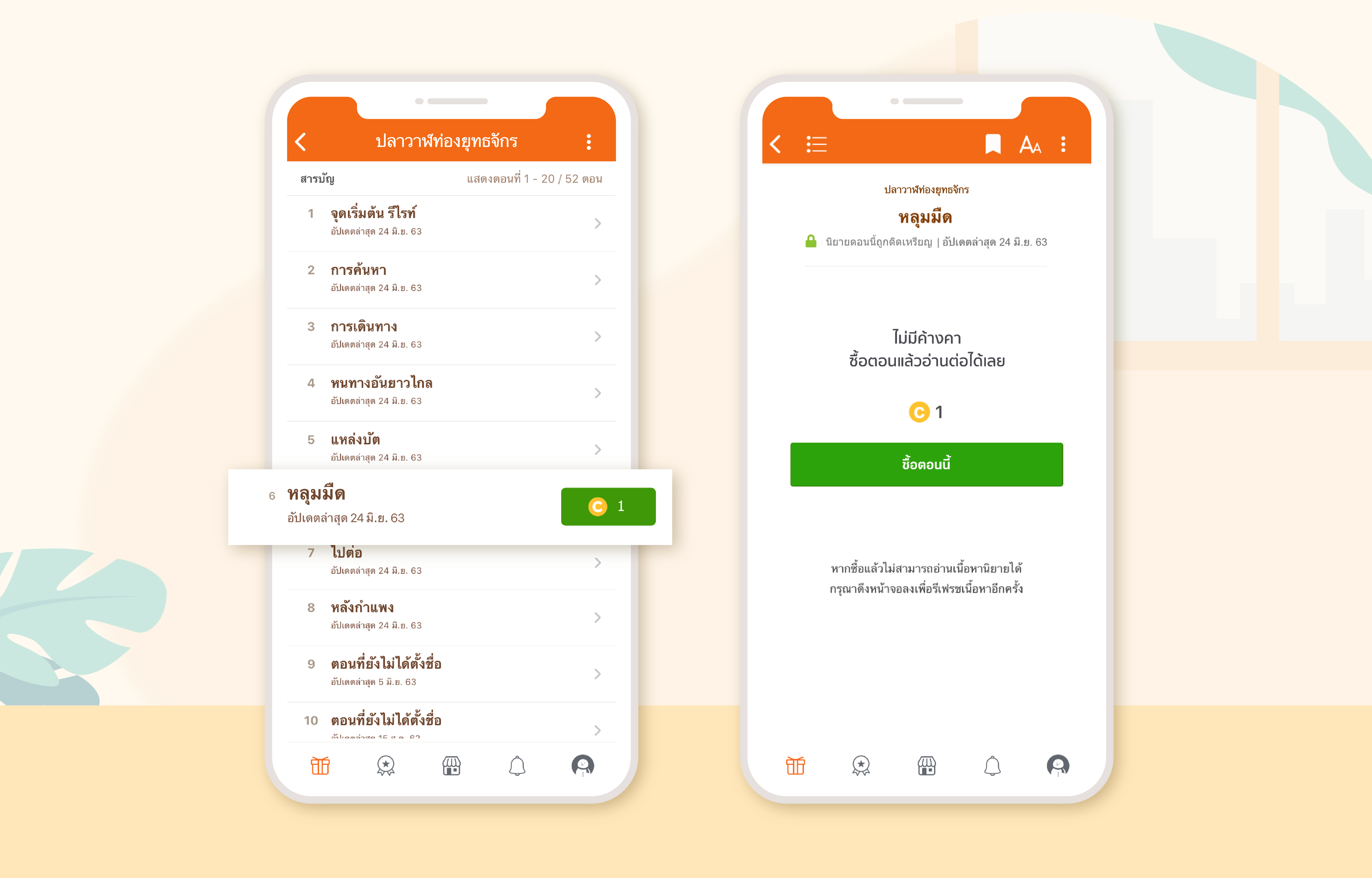 นิยายรายตอน คือ ฟีเจอร์น้องใหม่ที่ให้นักอ่านที่อยากสนับสนุนนักเขียนคนโปรด เพียงแค่ซื้อนิยายรายตอน ก็สามารถอ่านเนื้อหานิยายต่อได้ทันที แบบไม่มีค้างคา!