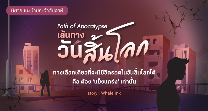 ฟังดูไม่ใช่เรื่องดีเลยนะ ทางรอดเดียวที่คุณทำได้คือ “เปลี่ยนชะตากรรมของตัวเอง” ด้วยการเตรียมพร้อมรับมือกับสิ่งที่เกิดขึ้นอย่างสุดความสามารถ เช่นเดียวกับเหล่ากลุ่มเพื่อนซี้ภพ แป้ง เอกและชัย ผู้เป็นตัวละครหลักของนิยายเรื่อง Path of Apocalypse เส้นทางวันสิ้นโลก ของ Whale Ink ทำ