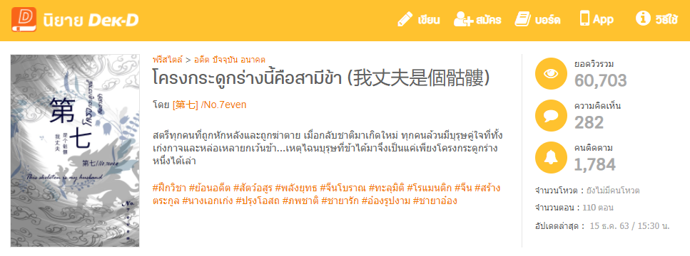 สวัสดีน้องๆ นักเขียนชาวเด็กดีทุกคนค่ะ ใครที่กำลังมองหารายได้เสริมจากการเขียนนิยาย ต้องไม่พลาดเรื่องราวจากนักเขียนสาวนามปากกา No.7even คนนี้เลยค่ะ แม้ว่าเราจะเห็นเธอเขียนนิยายบนเว็บเด็กดีเรื่อง โครงกระดูกร่างนี้คือสามีข้า อยู่เพียงเรื่องเดียว แต่ความจริงแล้วเธอมีผลงานมาแล้วมากมาย หลากหลายนามปากกา แถมยังมีงานอดิเรกคือการเขียนนิยายเป็นอาชีพเสริมมานานกว่า 10 ปีอีกด้วย