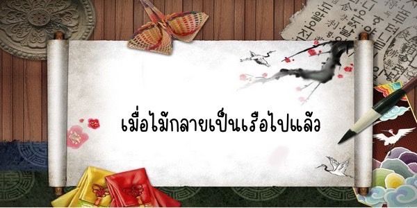 อันนี้จะเป็นคำพูดของ ชิงเหยา หนึ่งในตัวละครเรื่องได้กล่าวไว้ตอนหมดความอดทนกับพฤติกรรมของบิดาที่จะคิดหาผลประโยชน์จากการแต่งงานของนาง คิดจับคู่นางกับผู้มีอำนาจมากมาย ชิงเหยา จึงหารือกับน้องสาวผู้ตกอยู่ในสถานการณ์เดียวกันว่า หากระหว่างที่เดินทางรักษาผู้คน ได้เจอชายหนุ่มที่ถูกใจ ก็ให้รีบแต่งงานกับคนผู้นั้นเลย เมื่อไม้กลายเป็นเรือไปแล้วดูสิว่าท่านพ่อของนางจะยังกล้าเสนอนางให้ใครไหม