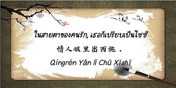 ความหมายของสำนวน : ไซซีคือหนึ่งในสี่สุดยอดหญิงงามของจีน ตำนานความสวยที่ฮ่องเต้ในยุคนั้นหลงจนไม่ทำงานทำการ พอมาใช้ในปัจจุบันก็จะประมาณ คนมีความรักก็เหมือนคนตาบอด บางทีหลงมัวเมาจนไม่เป็นทำอะไร โลกใบนี้ในสายตาฉันล้วนเป็นสีชมพูไปหมด