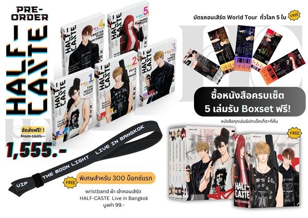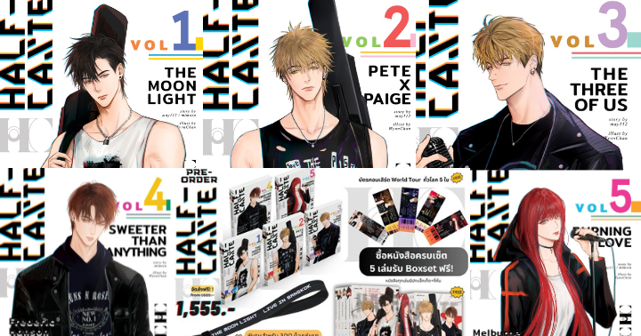 - Half Caste เซตนิยายรักวัยรุ่นขึ้นหึ้งกับตำนานวงลูกครึ่งสุดแสบซนและหล่อเท่ จนแม้จะผ่านมา 15 ปี นิยายทั้งห้าเรื่องในเซตก็ยังปัง