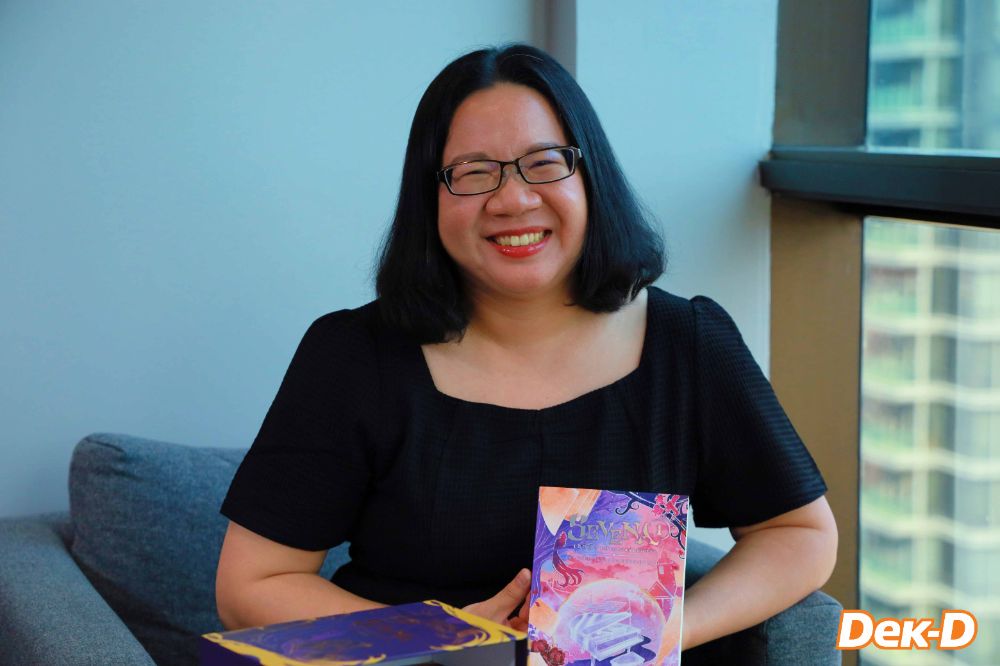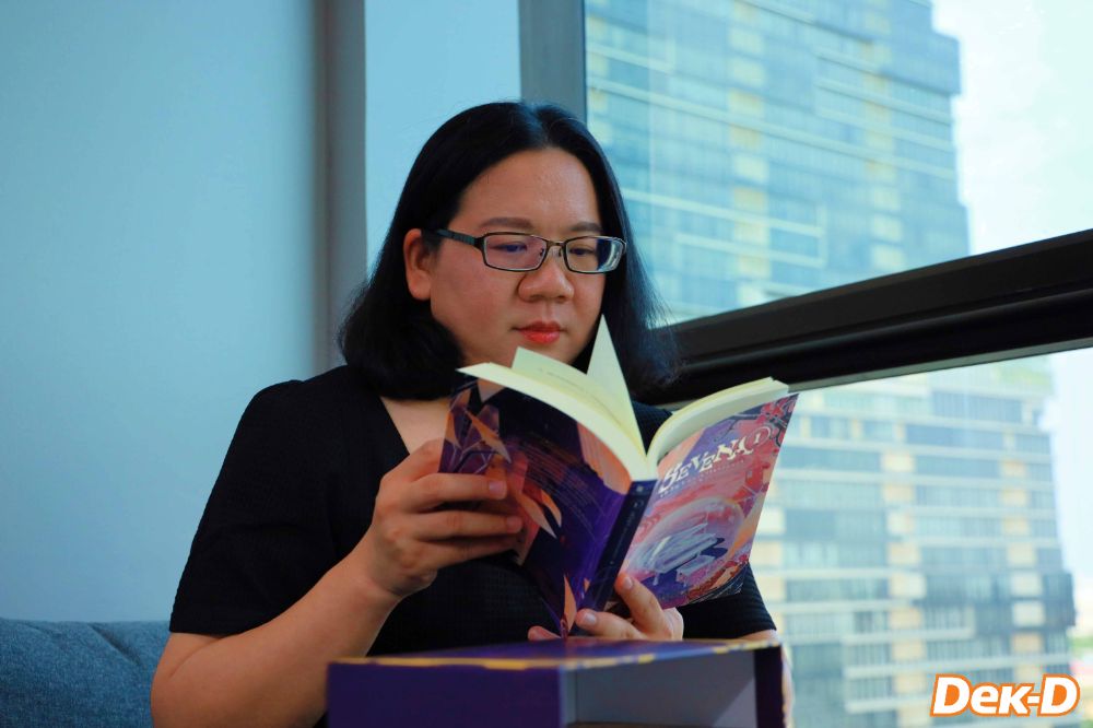 ตอนนั้นพี่ก็ทำสองอย่างไปพร้อมๆ กันเลย สิ่งที่เกิดขึ้นคือ พี่ทำงาน 8 โมงเช้าถึง 4 โมงเย็น พอกลับถึงบ้านกินข้าวอาบน้ำ หลัง 6 โมงเย็นก็เขียนนิยายถึงตีสอง ตื่นเช้าไปทำงาน ทำแบบนี้วนไป เซวีน่าพี่เขียนตอนเรียน เดรกเกอร์คือเขียนตอน 3 ปีแรกที่พี่เป็นทันตแพทย์ใช้ทุนที่โรงพยาบาล ทำอย่างนี้ 365 วันไม่มีวันหยุด ไม่ได้เที่ยว พี่เริ่มเที่ยวตอนที่พี่เริ่มลาออกแล้วนั่นแหละค่ะ