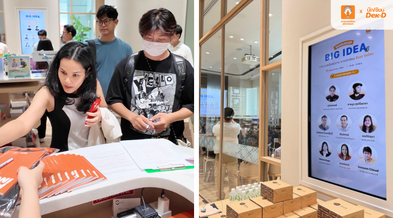 เมื่อวันเสาร์ที่ผ่านมา ที่ C asean สามย่านมิตรทาวน์ Niyay Dek-D ร่วมกับ ชมรมนักเขียนสร้างสรรค์ ได้มีการจัดเวิร์กชอปสุด Exclusive ภายใต้งาน BIG IDEA และการวางพล็อตนิยายจากนักเขียน Best Seller โดยมีนักเขียนชื่อดังมากมายมาร่วมแบ่งปันประสบการณ์กันภายในงาน สำหรับผู้เข้าร่วมงานก็มีทั้งเหล่านักเขียนมือใหม่ มือสมัครเล่น หรือแม้แต่คนที่กำลังคิดจะเริ่มเขียน ได้มาค้นหาไอเดียของตัวเอง ผ่านกิจกรรมที่ออกแบบมาอย่างเข้มข้นแต่เป็นกันเอง ไปชมภาพบรรยากาศกัน!