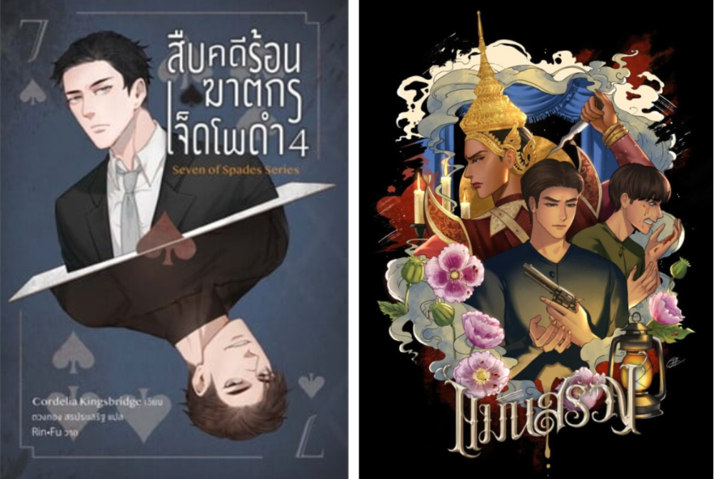 - แนวลึกลับ สืบสวน ที่อยากใส่กิมมิคให้ปกดูน่าสนใจกว่าภาพธรรมดาทั่วไป ปกแนวนี้ก็ตอบโจทย์ เพราะสามารถดึงความสนใจไปที่กิมมิคที่เราอยากสื่อสารได้อย่างชัดเจน
